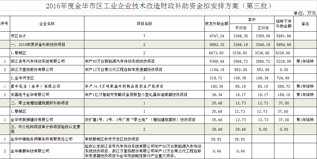 根據金華市人民政府《關于進一步推進工業(yè)有效投資的通知》(金政發(fā)〔2012〕92號)、《金華市人民政府關于加快培育現代產業(yè)體系打造先進制基地的通知》(金政發(fā)〔2016〕40號)、《金華市人民政府辦公室關于支持工業(yè)企業(yè)技術改造有關政策的意見》(抄告單〔2016〕53號)和《關于申報2016年度金華市區(qū)工業(yè)企業(yè)技術改造補助資金的通知》(金經信技投[2017] 32號)等文件要求,確定工業(yè)技改補助資金審計方式和擬安排方案?,F已得出審計結果,并將擬支持的項目及補助金額公示如下: