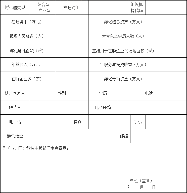 附件:1. 金華市級(jí)科技孵化器認(rèn)定申請(qǐng)表