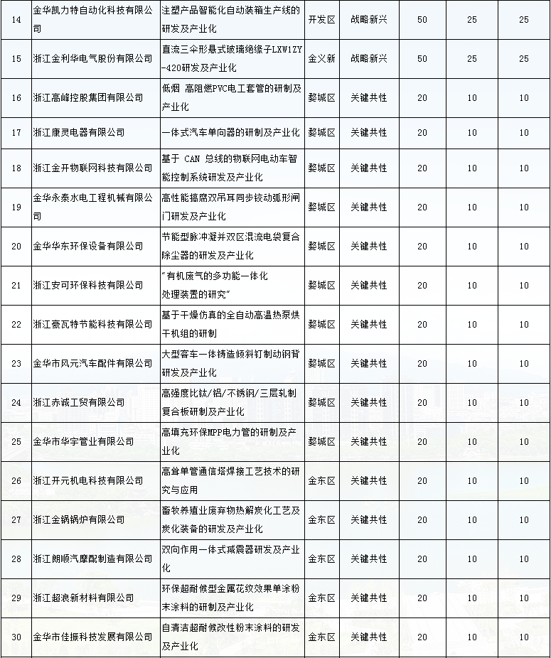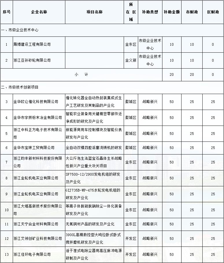 2017年金華市市級(jí)技術(shù)創(chuàng)新財(cái)政資金拔付情況的公示