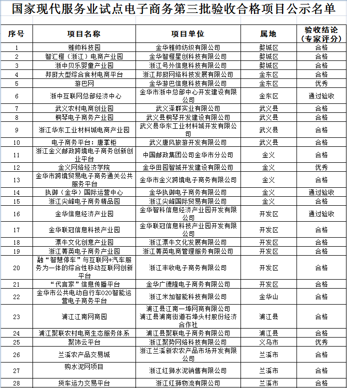 國家現(xiàn)代服務業(yè)試點電子商務第三批驗收合格項目公示名單
