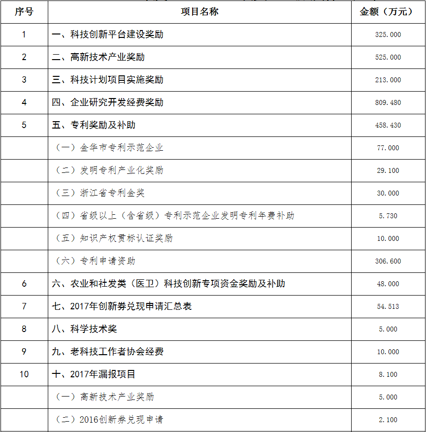 附件:2017年度科技創(chuàng)新專項資金獎勵及補助方案