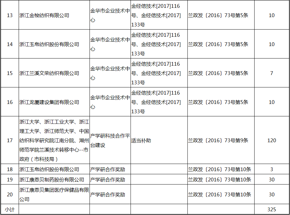 一、科技創(chuàng)新平臺建設(shè)獎勵(325萬元) |
