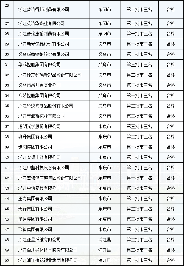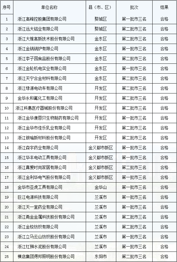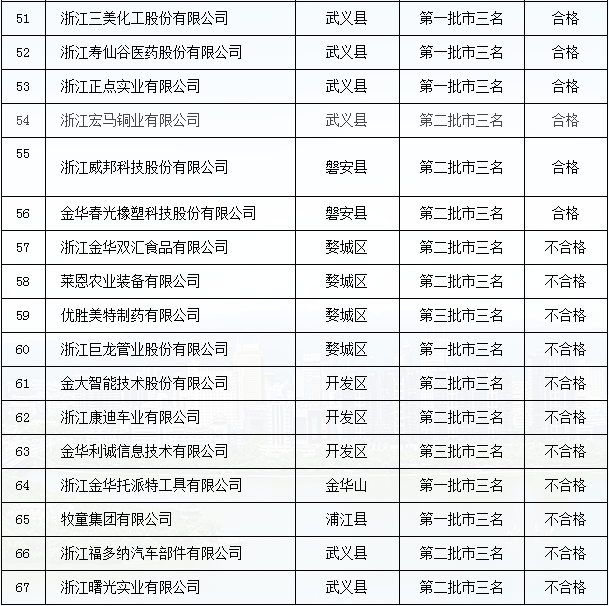 金華市”三名“培育試點企業(yè)復審結(jié)果