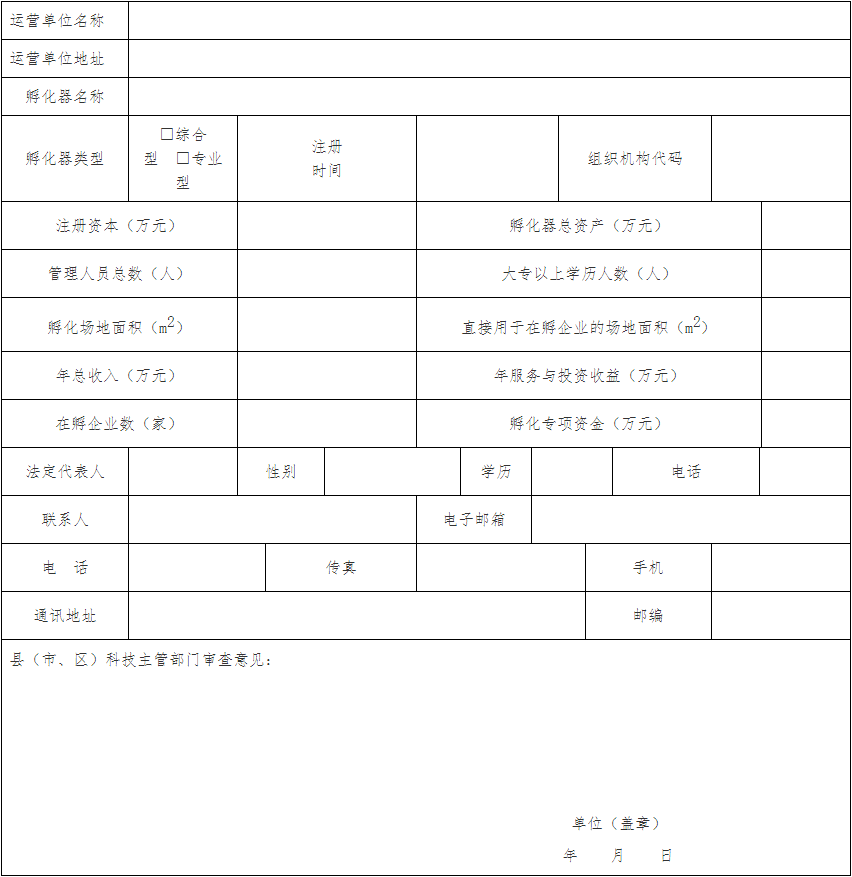 一、金華市級科技孵化器認定申請表