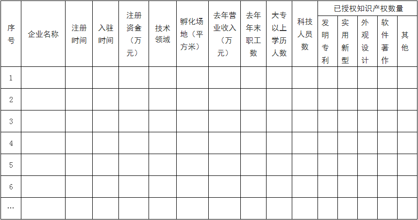 (六)在孵企業(yè)情況(在孵企業(yè)情況匯總表、在孵企業(yè)與孵化器簽署的孵化服務協(xié)議或入駐協(xié)議);
