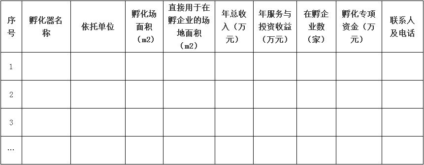 (一)各地科技主管部門要按照“省級以上高新區(qū)國家級科技企業(yè)孵化器(備案眾創(chuàng)空間)全覆蓋、各市、縣(市、區(qū))市級、省級科技企業(yè)孵化器(備案眾創(chuàng)空間)全覆蓋”的要求,加強科技孵化器的培育建設,認真做好審核把關和推薦工作。