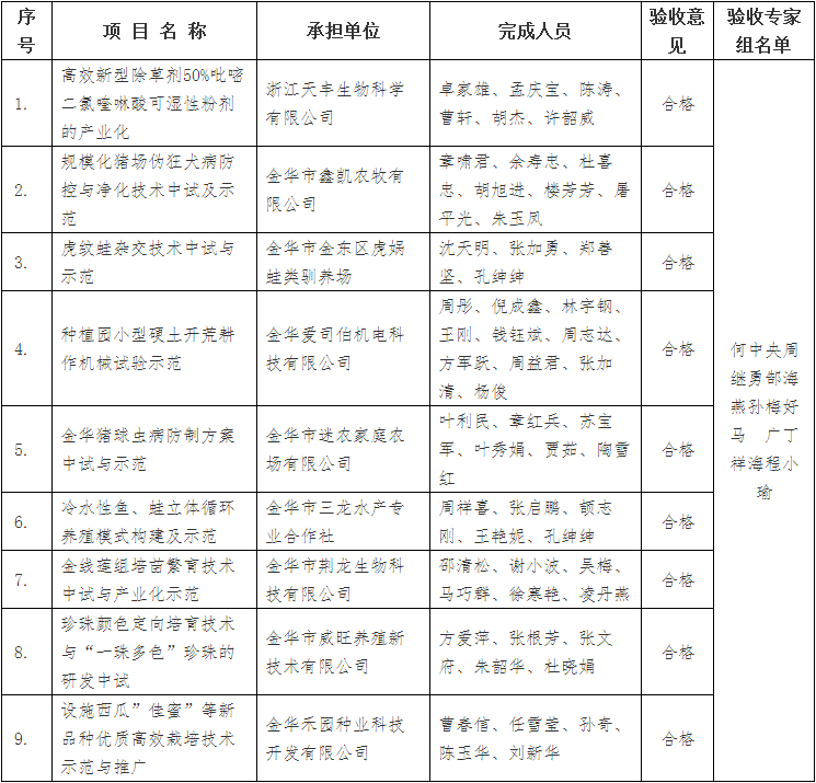 金華市級科技計(jì)劃項(xiàng)目驗(yàn)收結(jié)果公示清單