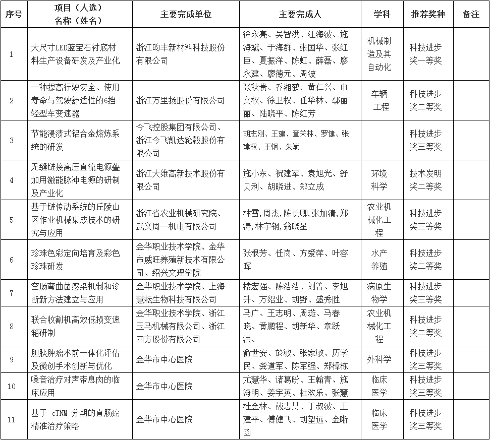 2019年度金華市區(qū)推薦省科學(xué)技術(shù)獎申報項目匯總表