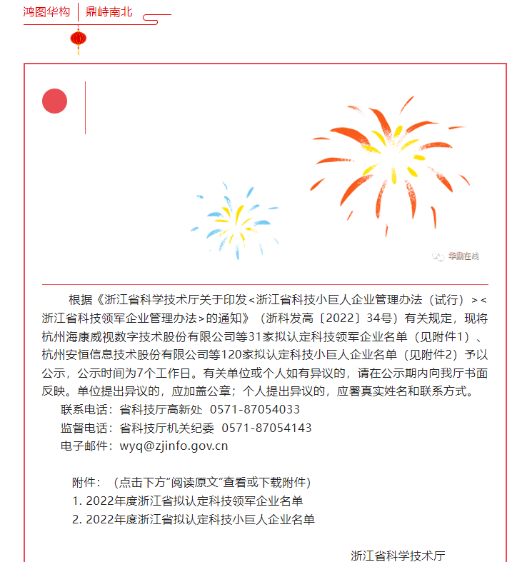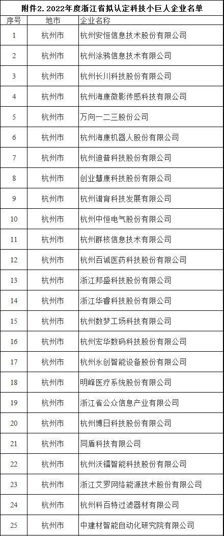 關(guān)于2022年度浙江省擬認定科技領軍企業(yè)、科技小巨人企業(yè)名單的公示